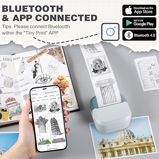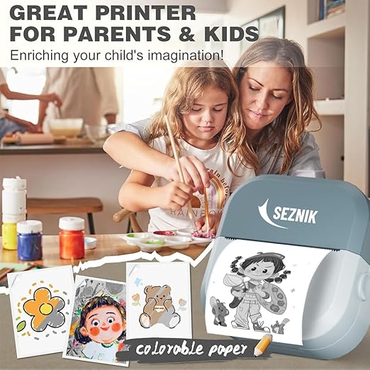 SEZNIK Mini Printer, Inkless, Thermal, Bluetooth, Portable Printer, Compatible Android, iOS Mobile. 1 Year Warranty (EON-PhantomBlue)